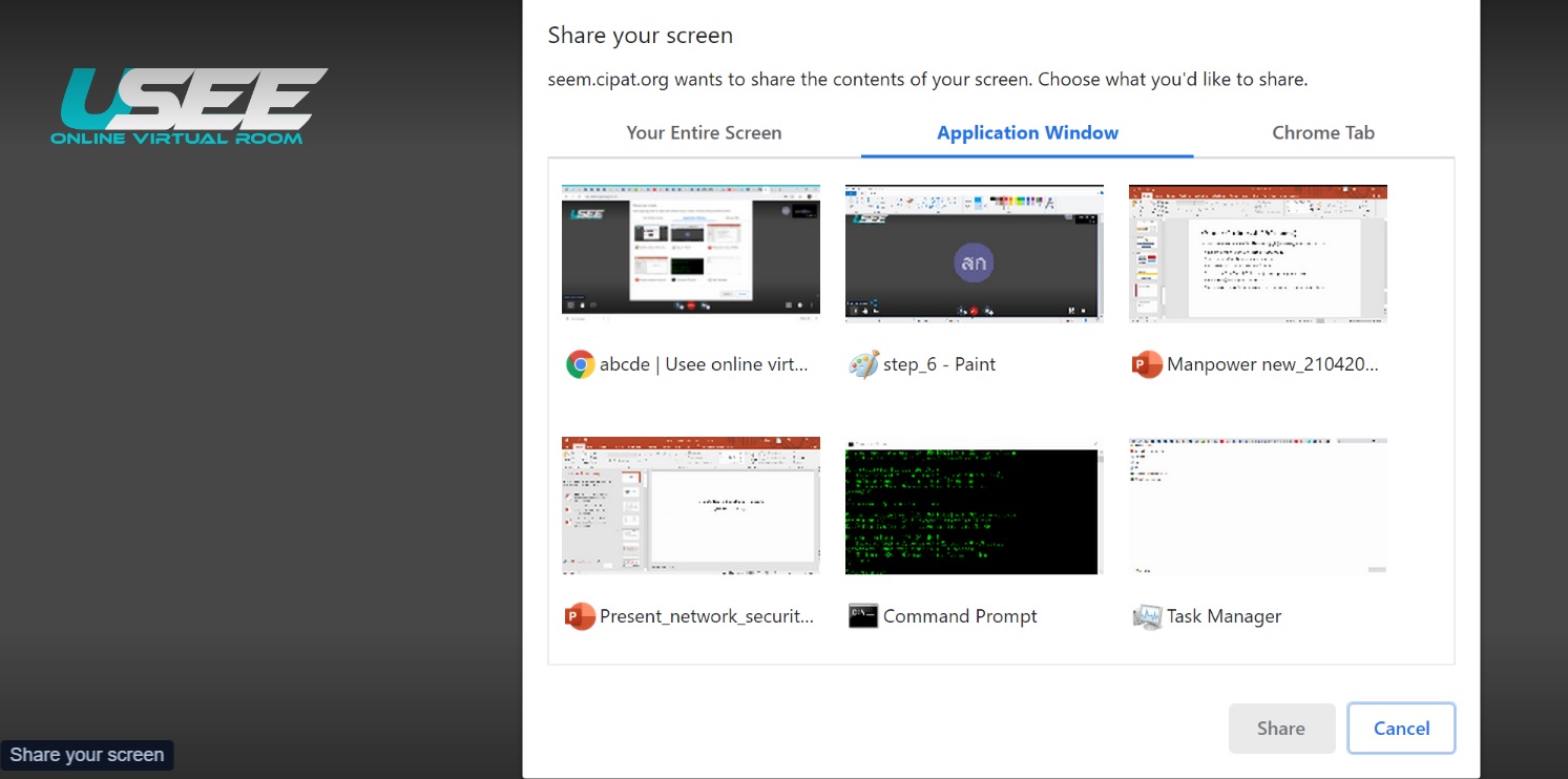 Usee Room ไม่ต้องลงซอฟต์แวร์ที่เครื่องคอมพิวเตอร์เพียงแค่เปิด Link URL ที่สร้างห้องเสมือนมาเปิดบนบราวเซอร์ รองรับได้ทั้ง Chrome, Firefox, Microsoft Edge และ Safari เป็นต้น